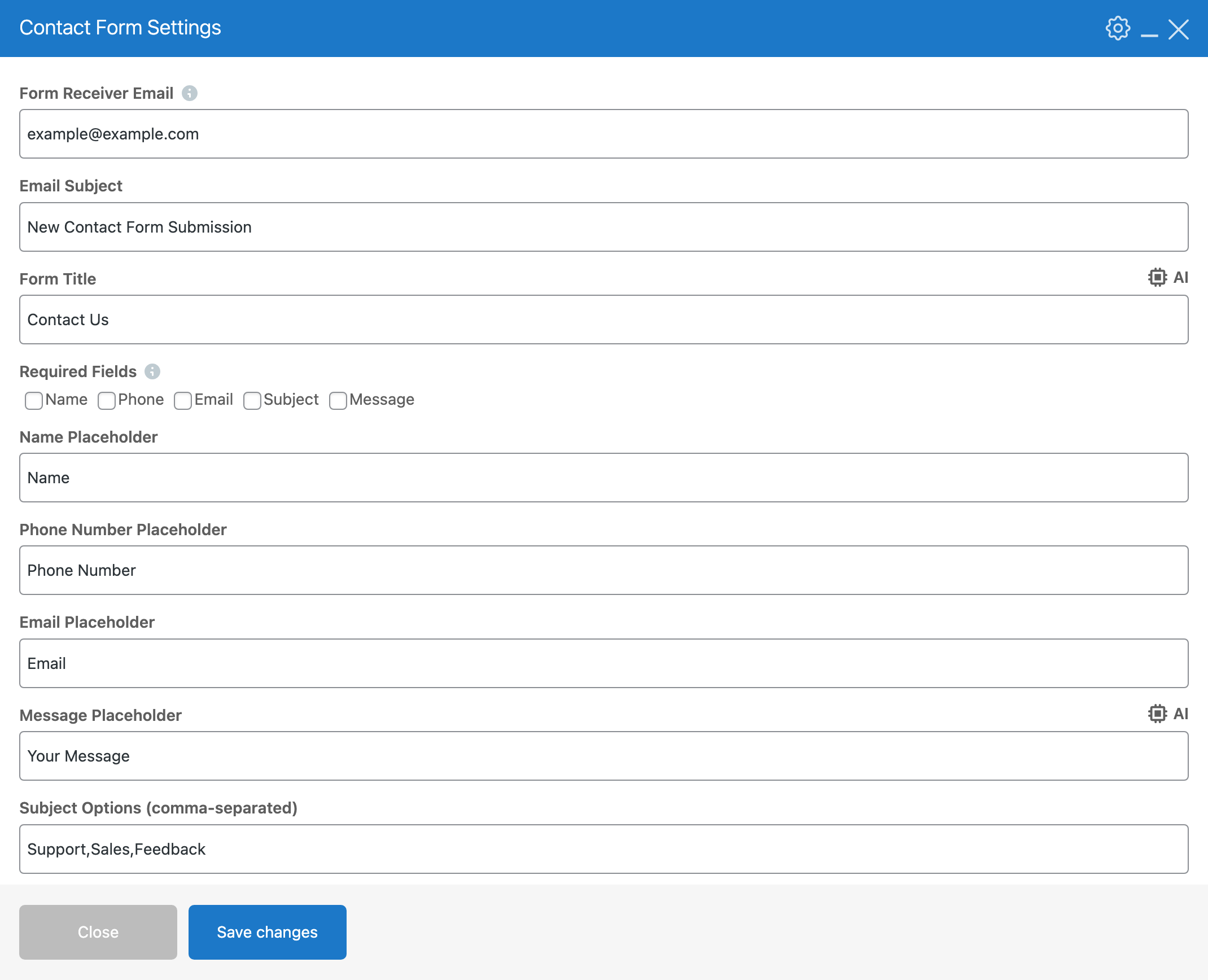 Description: Easily create a contact form wnd specify the form receiver and required field.